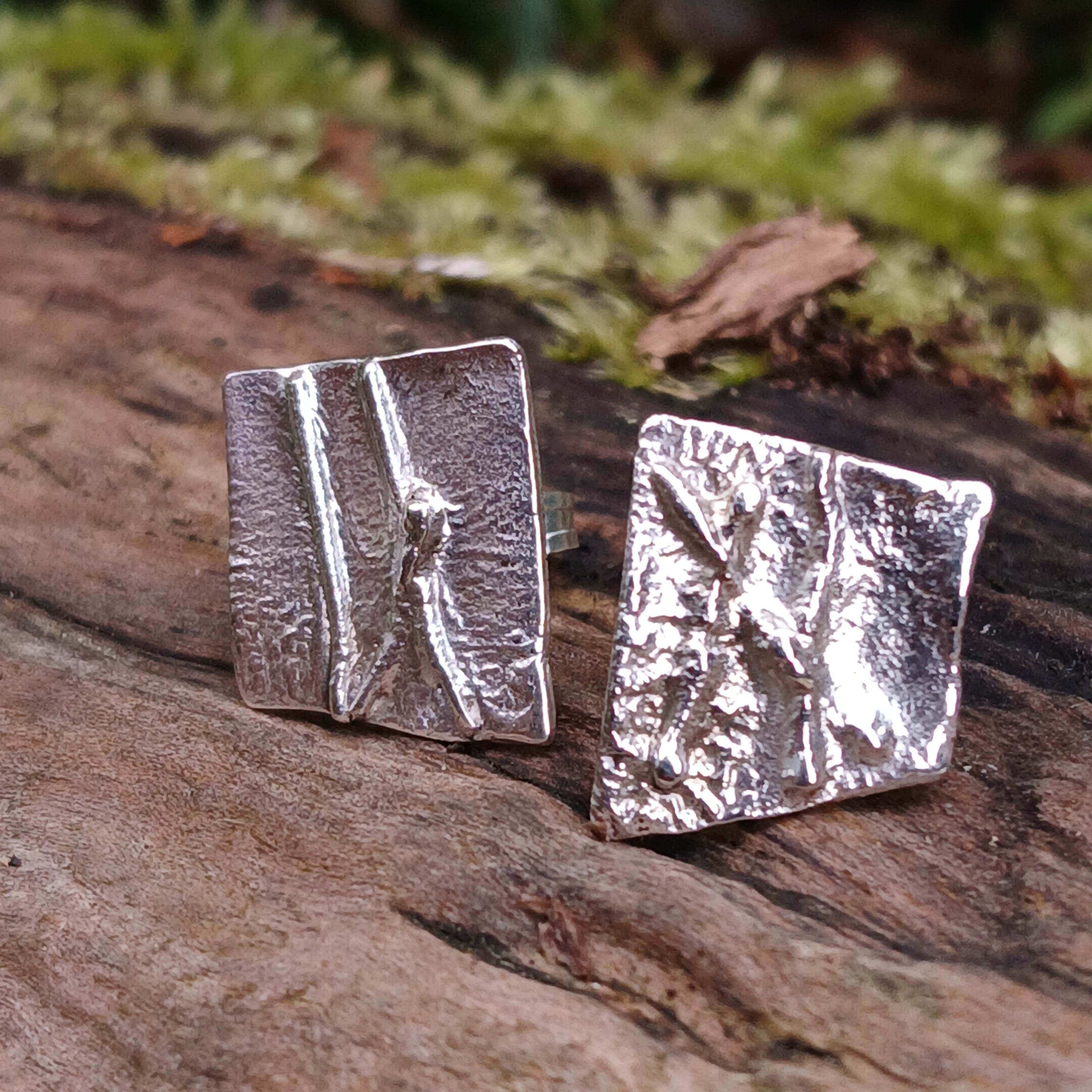 Current stud earrings from the melt range - Made from workshop offcuts recycled into new forms by fusing the pieces together. There can be no repeats with this technique so even pairs of earrings are different from each other.
